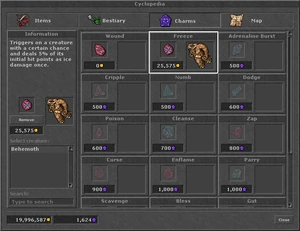 Charms are bonus effects that need to be unlocked with Charm Points. An unlocked charm can only be assigned to a completed creature entry and will provide you with a bonus against the corresponding creature.