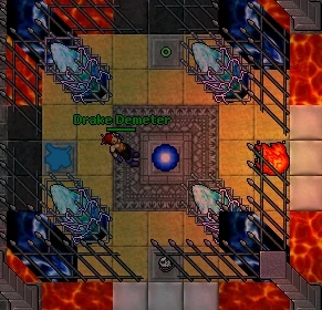 Step into a teleporter, this, according to the tibian history is when you start to dreamwalk. The paths you will find throughout the way are places who are called Dreampaths to the Dream Realm. As you are asleep, the monsters in there are just decorative and won't do you any harm. Note, though, that unless you are wearing Diving Equipment, it is possible to drown if you stand still for too long when passing through the Underwater part here.