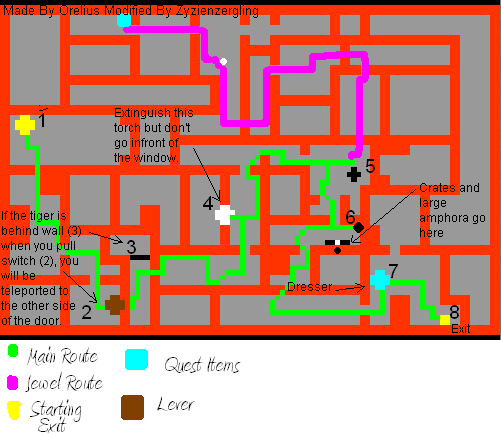 Once you are near #2, pull the switch after the tiger has walked north past wall (3).