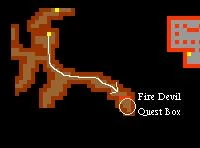 - Finally, follow this path to the south-east to the locked door, one Fire Devil, and the quest box containing a Bag with 1 Power Ring, Panpipes and 2 Small Amethysts: