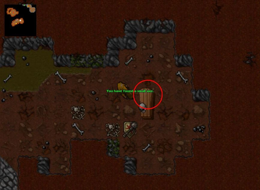 - In the south-eastern part of the room, right by the ladder down, search behind a large rock for a hidden Small Axe.