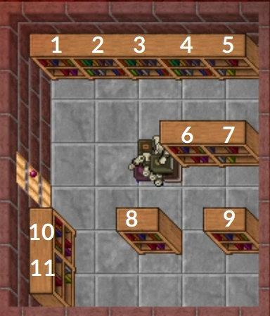 Thais has three main libraries inside the city, one of which is completely empty. Books can be found scattered around the city and in its immediate surroundings as well. The Island of Destiny, Fibula, Travora, the Ancient Temple, the Mad Mage Room, Mintwallin, and Mount Sternum also harbour some books.