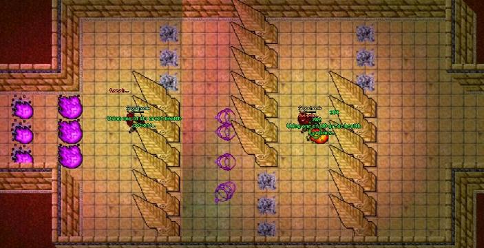 5. Everyone must step on the switch to get poisoned, after getting poisoned say hi to the Cobra (NPC) to the south (he will respond with Begone! Hissssss! You bear not the mark of the cobra! if you are not fast enough) to get teleported to a room with Thalas, 12 Plaguethrowers, 4 Necromancers, 0-8 Slimes (after getting teleported you will also receive the message from the Cobra: Venture the path of decay!)
