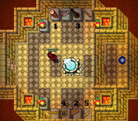 5. When you step in the teleporter go through the level 75 Experience Gate (here) and click each musical instruments in the right order to go through the next door.
