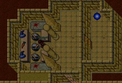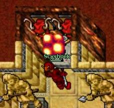 The Pharaohs reside deep down below the Ankrahmun Desert, each in their own tomb. To enter the tombs, you must find the right place to dig in the sand with a Shovel or equivalent functioning tool. Finding the hole is only the first challenge. You must make a sacrifice, a Scarab Coin, to be able to access the deeper parts of each tomb. These can be obtained by digging specific locations in the sand north of Ankrahmun, or as loot from various monsters. To use the Scarab Coin, step on top of the Mystic Flame in a tomb, usually below the second hunting floor, and place the Scarab Coin on the empty Coal Basin.