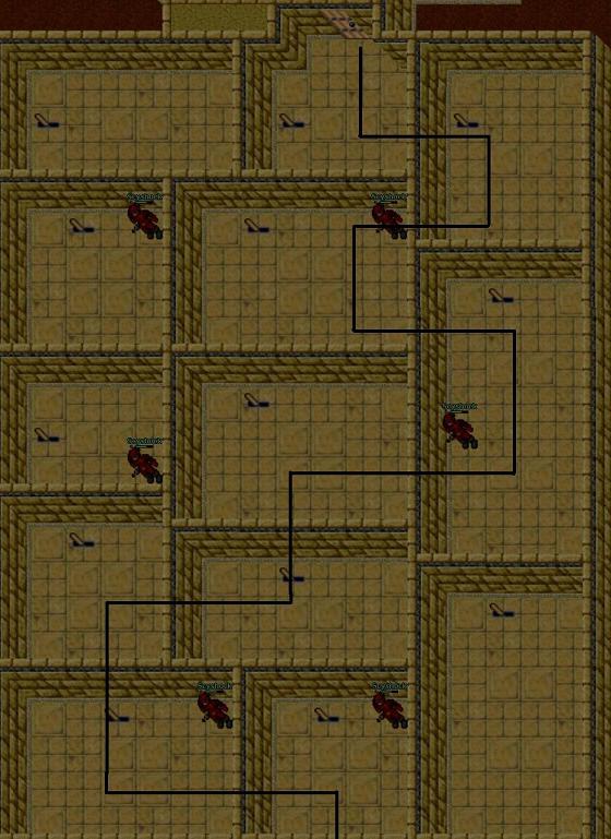 This quest involves exploring all tombs and as such, a great variety of monsters will be encountered. Simple monsters like Skeletons, Scarabs, Scorpions, etc. are common to most tombs while Dragons, Ancient Scarabs, Warlocks, Behemoths and Liches will be encountered in specific tombs.
