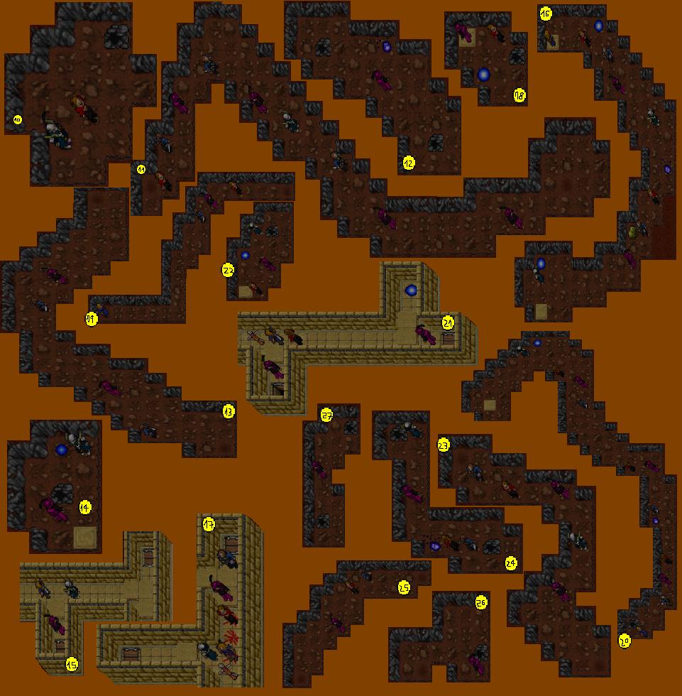 43 - Knight goes to the left and block the Deathslicer or use Magic Wall so team can enter the tp to the north, remember once you pass the tp, Morguthis is waiting you there with his summons.