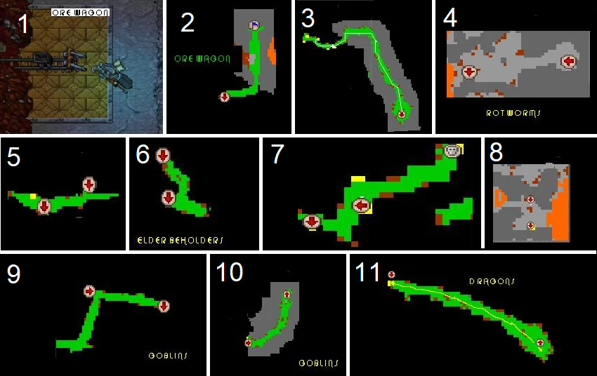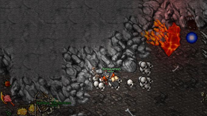 - Follow the path down on which you won't encounter more than Skeletons. (You will find an ore wagon which you can't use yet),Goblins and Rotworms until you see an NPC. if you take a wrong turn down the path You may also face dangerous creatures there like Diabolic Imps and Dragon Lords. If you encounter them you'll know you've went wrong.
