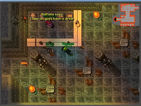- Go up the all the stairs in the main room, halfway to the emperor (west of the stairs which takes you to the Emperor) and find the bar. The door may be closed, just use the lever to open it, go down then south and you will find the bar.