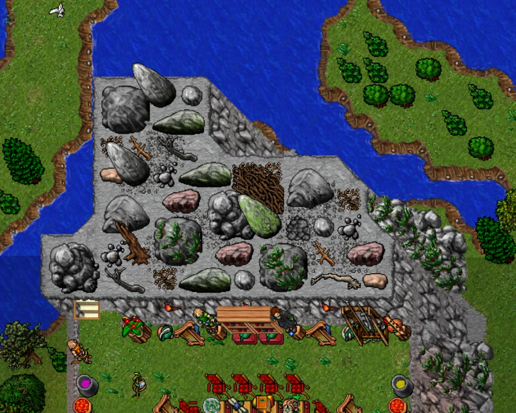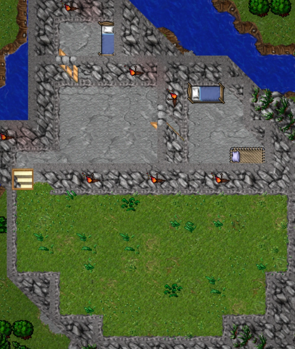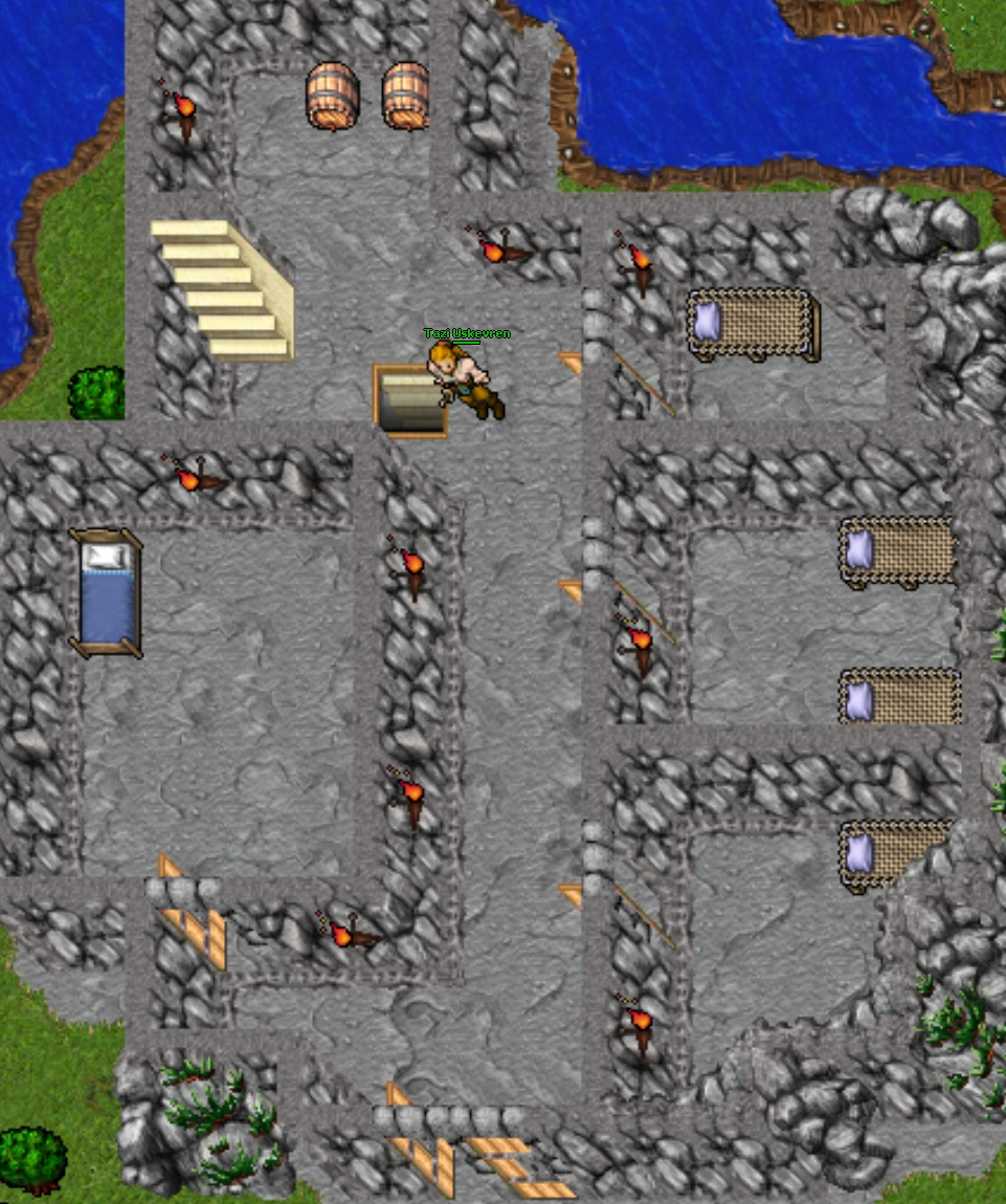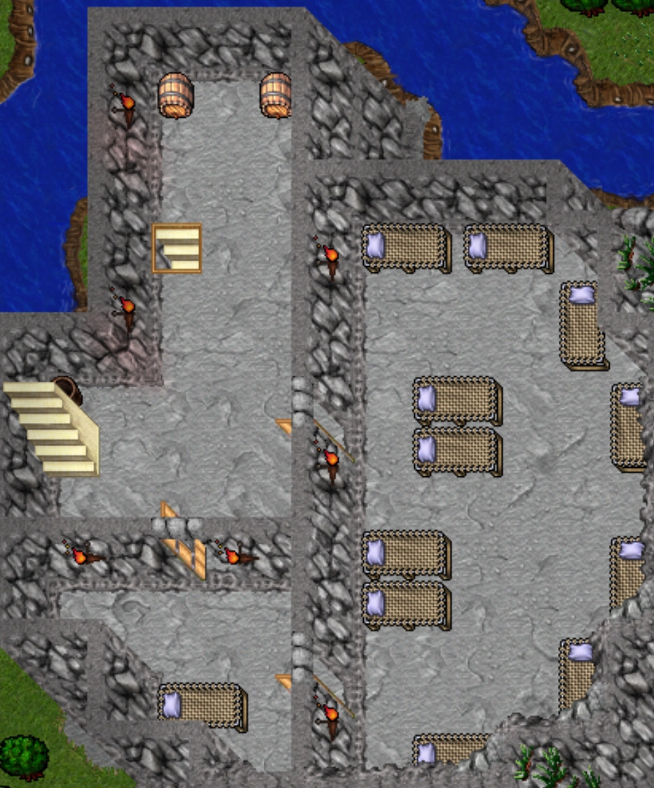 A Wine, a Water and 2 Beer casks along with a Dustbin and several Torch Bearers